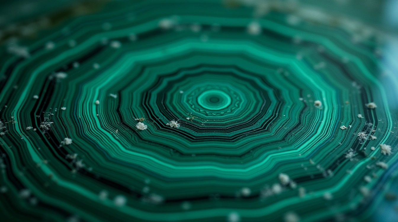 Distinguer une malachite authentique d'une imitation demande un œil exercé. Cette pierre naturelle présente des motifs concentriques uniques, jamais parfaitement symétriques. Les véritables malachites affichent des variations subtiles dans leurs bandes vertes, contrairement aux contrefaçons qui montrent souvent des motifs trop réguliers.